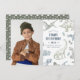 A modern boy's birthday party invitation with a dinosaur theme. This design features a set of hand-drawn dinosaurs in a sketch style. The dinosaurs include a t-rex, stegosaurus, triceratops, pterodactyl, and more! There are palm and fern leaves in between the dinosaurs. The colour scheme is a soft boho combination of blue and green tones. On the left side, there is your custom photo. Cards reverse to a pattern of dinosaur tracks against a green background. Feel free to contact me if you would like this design in a different colour scheme! View the collection linked on this page for matching items, or visit our store for more birthday party invitations!