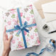 Dinosaur Pink Pastel Cute Girl Birthday Name Text Wrapping Paper