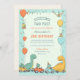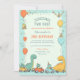 A playful and colourful dinosaur birthday design featuring cute dinos driving race cars, balloons, and party decorations. Perfect for a fun-filled second birthday celebration with a dino racing theme.