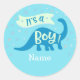 Un tour C’est un autocollant de baby shower Garçon avec un dinosaure bleu mignon. Personnalisable .