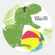 Dinosaure d'été t-rex ou tyrannosaurus rex portant des lunettes de soleil et portant une balle de plage sur ces autocollants tout usage pour des projets d'artisanat ou décorant de l'électronique et des fournitures scolaires.