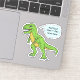 What does the T-Rex say? That's for you to decide. This cool, cut-out sticker has a doodle drawing of a green Tyrannosaurus Rex dinosaur with a speech / thought bubble. Use the easy template to add your text. You can also edit further to change font or text size.