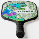 Colourful Dinosaur T rex roar personalized Jurassic jungle pickleball bat, ideal for boys and adults that love dinos. Easy to use templates for personalized child’s name. Original artwork by artist Catherine Sweetman