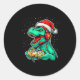 Dinosaur T Rex Playing Video Game Santa Hat Christ Classic Round Sticker