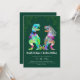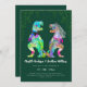 Funny Colorful Dinosaur Jurassic Wedding Invitation Dark Green & White | Watercolor T-Rex Bride and Groom | Modern Jungle Theme with QR Code RSVP