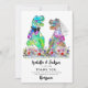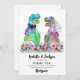 Un drôle de Merci mariage à thème dinosaure à vos invités pour être grandiose avec ce fleur sauvage et dino coloré T-Rex marié et marié mariage carte de remerciements. Fun Tyrannosaurus Rex marié et marié dans une prairie fleur sauvage romantique et la typographie moderne whimsical avec facile d'utilisation modèle. Dinum préhistorique d'origine et oeuvres d'art florales d'été de l'artiste Catherine Sweetman