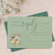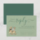 Carte RSVP de mariage Dinosaur vert & vert foncé avec T-Rex Bride & Groom Ajoutez une touche préhistorique ludique à votre grand jour avec cette carte RSVP de mariage à thème dinosaure. Doté d'une charmante mariée T-Rex aquarelle et mariée par l'artiste Catherine Sweetman, ce design allie le plaisir fantaisiste et le style de mariage élégant. Le script de style calligraphie vert foncé s'associe magnifiquement à la typographie moderne sur un arrière - plan vert sage élégant, créant un équilibre parfait entre sophistication et personnalité. Facile à customiser, cette carte RSVP de mariage bleu marine et blanc coordonne sans effort avec votre thème unique de dino jurassique, que vous soyez l'hôte d'une célébration extérieure légère ou d'une réception formelle avec une touche d'humour. Idéal pour les réceptions de mariage, les dîners de répétition ou les mariages de destination, il fait partie d'une suite mariage vert sauge complète qui vous permet de porter votre histoire d'amour inspirée d'un diner dans tous les détails de votre papeterie. Faites sourire vos invités dès qu'ils ouvrent leur invitation avec cette carte RSVP mariage amusante mais élégante pour dinosaures parce que l'amour est intemporel comme les dinosaures.