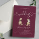 Delight your guests with a fun and unique dinosaur burgundy and ivory cream wedding invitation featuring a charming elegant fun T-Rex bride and groom. The elegant stylish modern script adds a touch of playfulness, while easy-to-use templates allow you to personalize the invitation with the bride and groom’s names, wedding date, and all essential details. This original artwork by artist Catherine Sweetman captures the joyful essence of your big day with its fun dino T-Rex bride and groom illustrations and modern typography. A truly one-of-a-kind design that your guests will love!