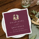Add a roar of fun to your big day with these funny dinosaur wedding napkins, featuring a whimsical watercolor illustration of a T-Rex bride and groom in soft brown and beige tones and ivory cream elegant modern script and typography set against a rich burgundy background, these custom wedding napkins blend playful prehistoric charm with elegant wedding style.