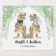 Delight your guests with these fun dinosaur themed wedding custom wine labels. Fun dinosaur bride and groom in brown hues and green watercolor eucalyptus foliage. T-Rex dino bride and groom with Easy to personalize bride and grooms names and the wedding date in modern whimsical typography script. Unique original dino artwork by artist Catherine Sweetman