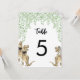 Ideal for a dinosaur theme wedding, make it easy for your wedding guests to find their place with this fun dinosaur bride and groom table number. Just add the table number for each table using the simple templates to create a double sided table number chart. Funny T-Rex bride and groom in brown hues with green jungle foliage will delight your guests and bring dino prehistoric fun to the occasion. Original artwork by artist Catherine Sweetman
