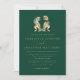 Delight your guests with this fun and stylish dinosaur themed wedding dark green, gold and beige invitation, perfect for couples who share a love for dinosaurs! Featuring minimalist T-Rex dinosaur bride and groom illustrations in earthy brown tones, this design brings together humour and elegance with a modern twist. The clean, modern typography script in gold and light beige on a stylish rich dark emerald green background adds a sophisticated touch while maintaining a playful vibe that reflects your unique love story. Perfect for any season spring, summer, fall or winter weddings.