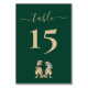 Funny Dinosaur Wedding Table Number card Jurassic T-Rex Bride & Groom dinos on Dark Green
