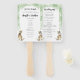 Delight your guests with this funny dinosaur themed wedding day program fan with funny dinosaur bride and groom and watercolor eucalyptus foliage. Easy to customize with the bride and grooms names, the wedding date and all the wedding day ceremony details in modern typography script. Fun T-Rex dino bride and groom dino illustrations in brown hues with watercolor botanical greenery in green hues. Unique original dino artwork by artist Catherine Sweetman