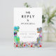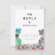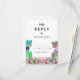Bring fun and joy to your wedding day preparations with this colourful Dinosaur themed wedding RSVP reply enclosure card with psychedelic T-Rex bride and groom in a colourful prehistoric wildflower meadow. Modern whimsical typography calligraphy with easy to personalize templates. Unique Tyrannosaurus Rex bride and groom with watercolor summer floral art original artwork by artist Catherine Sweetman Ideal for the wedding day reception or rehearsal dinner. Matching wedding suite includes everything you will need on your fun wedding journey