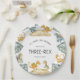 Modern and Clean Design, Cute Watercolor He's a Three-Rex Dinosaur Birthday Party Boy's 3rd Birthday Party Ilustrated Custom Paper Plates.