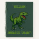 Green background. An image of a Tyrannosaurus Rex with the quote: Jurassic Smart! Green text.