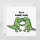 Dinosaur valentines greeting card features green dino couple in love with phrase You`re rawwr-some