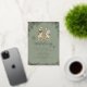 Celebrate your big day with a roar! This unique dinosaur-themed wedding invitation features a whimsical T-Rex bride and groom design, perfect for couples who love dinosaurs and want a playful twist on traditional wedding stationery. Set against a stylish sage green background, the invite is adorned with elegant gold foil script and gold eucalyptus foliage for a modern stylish look.