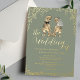 Fun Dinosaur Wedding Invitation dark sage green and Gold Foil & Eucalyptus jungle foliage Design