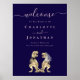 Dinosaur Wedding Welcome Navy Blue Blush Pink Poster