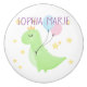 Cute dinosaur wearing a crown and carrying festive balloons, all in soft pastel colours.