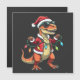 Dinosaur Wrapped with Christmas Lights Santa Hat