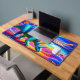 Ce tapis de bureau a une photo de dinosaure dessus.