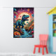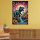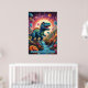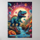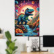 Dinosaure capricieux et vibrant qui semble être un mélange d'imaginaire et de charme préhistorique. Le dinosaure a un long cou et une grande tête, avec une expression aux yeux larges, avec des yeux surdimensionnés et captivants qui lui donnent un look mignon et curieux. Sa peau est ornée de motifs complexes ressemblant à des formes et des points colorés et tourbillonnants, comme si son corps était peint d'un kaléidoscope de textures dans les bleus, les verts, les jaunes et les violets. L'arrière - plan vibrant, avec ses cieux tourbillonnants et ses planètes abstraites, donne l'impression d'un paysage autrement mondain, suggérant que le dinosaure réside dans un monde surréaliste et fantastique. Les couleurs vives et exagérées et les traits ludiques confèrent à la créature un caractère convivial et animé, idéal pour un cadre magique ou onirique. Ce dinosaure pourrait appartenir à une espèce imaginaire d'un royaume cosmique, où la flore et la faune prospèrent dans des écosystèmes psychédéliques dynamiques, mêlant vie préhistorique et rebondissements spatiaux. Son comportement exsude l’innocence et de l’émerveillement, comme s’il explorait pour la première fois son univers fantastique.