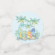 Colourful jungle scene cute dinosaurs featuring a grouping of dinosaurs with palm trees & jungle leaves set on a blue background for a boys baby shower.