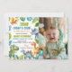 Create a personalized and adorable dinosaur baby boy birthday invitation with this customizable template. Featuring cute dinosaur illustrations and a space for your child's photo, this invitation is perfect for any dino-loving family. Easily add the party details and send out to your guests for a roaring good time.