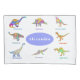 Add a Childs name to personalize this colourful dinosaur with names periwinkle pillow case and create a fun Jurassic dino bedroom. The perfect palaeontology educational gift for the girl or boy who loves dinosaurs. Dino custom bedroom decor with 12 Dinosaurs in colourful psychedelic bright colours with their dinosaur names. This fun pattern includes all the prehistoric jurassic era favourites including T-rex or tyrannosaurus, velociraptor, brachiosaurus, brontosaurus, stegosaurus, the flying pterodactyl, triceratops, spinosaurus, ankylosaurus, plesiosaurs, parasaurolophus and pachycephalosaurus a fun spelling challenge for any child. Original artwork by artist Catherine Sweetman