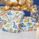 Dinosaurs with superhero masks, capes and text wrapping paper