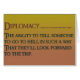 Diplomacy - the ability to tell someone to go to hell in such a way that they'll look forward to the trip.