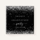 Un arrière - plan noir élégant avec une parties scintillant en faux argent. Personnalisez et ajoutez un nom et la date. Peut être utilisé comme livre d'or ou la planification de la fête.