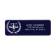 Annonces de remise de diplômes d'études de droit créatives, invitations à des fêtes et notes de remerciement grandioses, étiquettes d'adresse de retour présentant des échelles de justice amusantes.