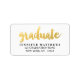 Design moderne élégant - Gras écriture manuscrite - Diplômé - Gold et Black texte sur Blanc - Étiquette de adresse de diplôme. Faux feuille or (effet photo imprimé sur une surface mate) sur un arrière - plan blanc couleur solide invitation à retourner les étiquettes d'adresse. Elke Clarke© pour Monogram Gallery. Pour d'autres couleurs et styles disponibles.