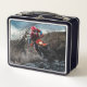 This is a standard metal lunchbox that appears to work just fine. We designed this box ourselves with an uploaded photo and custom text on the front and back. It looks absolutely beautiful except the front of the lunchbox is not centered like it shows in the photo. The print borders don't align with the inset flat part of the box where the preview photo online showed it perfectly centered in there. The back looks nice and centered though.