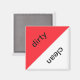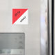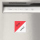 It's as simple as (dusty) red and white. If the dishes are dirty, put the magnet "dirty" side up and if they are clean, flip it around.