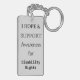 Awareness ribbon angel keychain features the art of a silver awareness angel painting. The art side notes "Disability Rights Awareness" and the reverse side states "I Hope & Support Awareness for Disability Rights!" Add your own custom words for personalized angel art cause awareness custom charm key chains! You can also remove the text for an art only angel pendant key chain. The silver awareness angel ribbon painting art keychains can be customized with personalized messages to make great awareness cause art key chains for fundraisers, awareness gifts, or other special events. Give this angel art keychain charm as an awareness ribbon gift for any occasion.