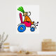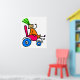 Cute cartoon whimsical illustration of a happy little disabled girl waving from her funky pink wheelchair. Easily customize and choose your own background colour or add text. Image available on various gifts and products.