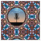Enjoy this colorful abstract mandala design, featuring the silhouette of a disc golf basket.