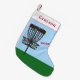 Calling all disc golf lovers! This personalized Christmas stocking features a disc golf basket with christmas lights and a disc. It is the perfect gift for that disc golf lover in your life! Add a name to the top of the stocking to make it extra special.