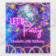 "Let's party" design with vivid neon glow lights in blue, pink, and purple, for girls' and women's birthday parties, great for roller skating, and dancing parties in the retro style.