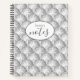 This notebook features a funky silver disco ball pattern along with a custom name and the word "Notes" on the front cover.