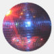 Mirror disco rotating ball with laser lights reflection in blue and red