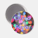 Round magnet with an image of rainbow-coloured disco lights and the words “Disco Fever” in light and dark purple lettering. See the entire Disco 70s Magnet collection in the PARTY FAVORS section.