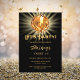 A Sweet 16 party invitation. A black background deecorated with a golden disco ball. Text: Let's Party! Personalize and add a name and party details. The name is written with a hand lettered style script.