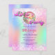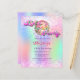 A girly and feminine 18th (or any age) party invitation. A holographic background in pink, purple and mint green. Decorated with a colourful disco ball and pink confetti. Text: Let's Party. Personalize and add a name and party details. The name is written with a hand lettered style script.
