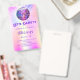 A girly Sweet 16, 16 birthday party invitation. A holographic coloured background in purple, pink, yellow, blue. Decorated with a colourful disco ball. Text: Let's Party! Personalize and add a name and party details. The name is written with a hand lettered style script, purple coloured letters.